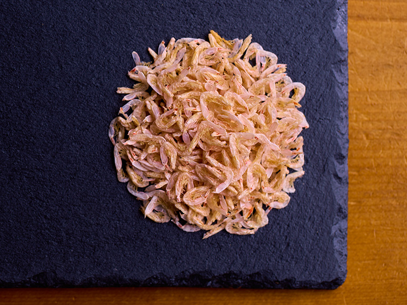 カタクチイワシ漁の際にイワシに混ざって網にかかったえびです。新鮮なうちにイワシと一緒に真水で煮て、乾燥させたのちに選別していますので、イワシの煮干の風味がいたします。
